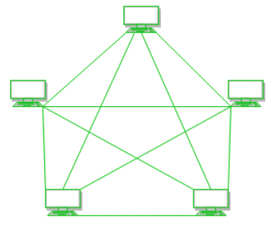 메시 토폴로지는 모든 노드가 각각의 다른 노드와 링크로 연결되어 있는 구성입니다. 노드가 N개인 메시 토폴로지에서 필요한 링크의 개수는 1 + 2 + 3 + ... + (N - 1) = N(N - 1) / 2 개입니다.